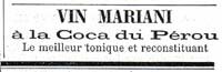 Dans cette publicité de 1898, le vin Mariani ne cache pas la présence de feuilles de coca dans sa recette. Contrairement aux allégations de The Coca-Cola Company, Coke en contiendra jusqu’en 1903. |